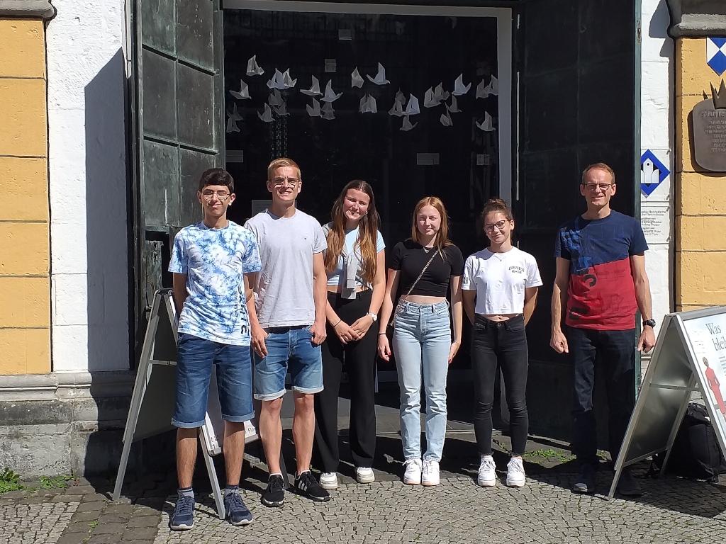 Am Montag, 4.Juli 2022 besuchte der (leicht dezimierte) mu gk 11 die Orgel der Florinskirche in der Koblenzer Altstadt. A-Kantor Christian Tegel stellte das Instrument mit einigen Kompositionen vor und erläuterte sehr lebendig die Funktionsweise der Orgel und die Klang-farben der einzelnen Register. Besonders in Erinnerung bleiben wird allen der Gang durch die Orgel, bei dem neben den Pfeifenreihen auch die Mechanik und Elektronik zu bestaunen waren. Dass die Schüler selbst mit Hand anlegen und einzelne Pfeifen stimmen durften, sorgte für Bauchkribbeln.