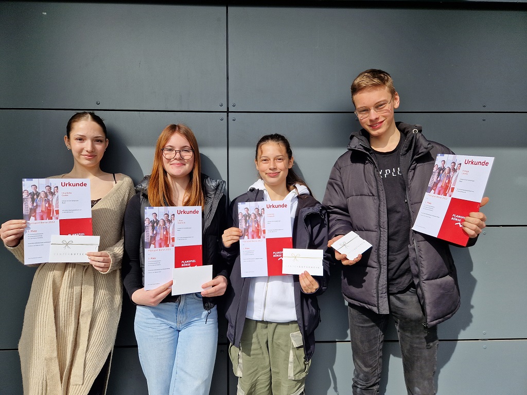 Viererteam der 10b belegt ersten Platz beim Planspiel Börse
