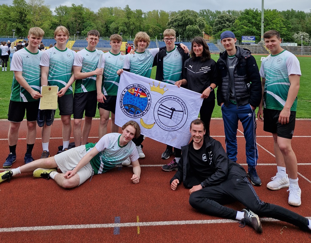 Am vergangenen Mittwoch konnten sich die beiden Leichtathletik-Mannschaften des Gymnasiums auf der Karthause im Stadion Oberwerth gegen die Konkurrenz durchsetzen. Bis auf die MSS 11 trafen sie sich mit ihren Coaches Frau Caesar und Herrn Beck an der Schule und liefen nach Ausgabe der Trikots gemeinsam zum Stadion. Die Elftklässler musste zunächst noch eine Leistungskursklausur schreiben und wurden direkt im Anschluss von Herrn Zerwes zum Wettkampf gefahren.