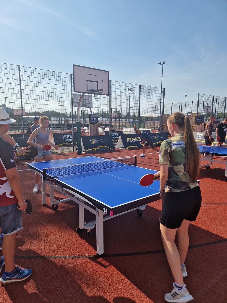 Am Sonntag Morgen trafen sich 90 SchülerInnen der Jahrgangsstufen 8 bis 13 am Busbahnhof in Koblenz, um in Begleitung von Herrn Beck, Frau Caesar und Herrn Zerwes im Rahmen der Ready Steady Go – AG und als Integrationsmaßnahme für die neuen Sport-LKs 11 nach Düsseldorf zu den Invictus Games zu fahren. Nach zwei Stunden wurde die Gruppe an der Merkur-Arena herzlich willkommen geheißen und mit Postern und Essensgutscheinen ausgestattet. Bevor es ans Erkunden des Invictus Villages ging, in dem sich eine Reihe von Informations- und Mitmachständen befand, wurde das eigene Zelt dekoriert. Unsere Schule konnte dort die AG sowie das Profil der Schule mit Postern und dem Berlin-Video präsentieren. In der Arena, die beeindruckend umgebaut worden war, fanden spannende Rollstuhlrugbyspiele sowie Powerlifting statt. Auf dem Leichtathletikplatz feuerten die SchülerInnen beim 400m-Lauf im Krieg psychisch und/oder physisch verletzte Athleten an. Trotz der Hitze wurden viele auch selbst sportlich aktiv und probierten sich im Rollstuhlbasketball und Bogenschießen oder spielten Tischtennis. Ein großes Highlight für einige Glückliche war das Erspähen von Prinz Harry, dem Schirmherr der Invictus Games. In der Team Respect Area teilten SoldatInnen ihre berührenden Lebensgeschichten. Die großartige Stimmung auf dem ganzen Gelände machte klar, dass die Veranstaltung dem Ziel, an Seele und Körper verwundeten SoldatInnen eine neue Perspektive zu geben, definitiv näher gekommen ist. Mit vielen neuen Eindrücken und zahlreichen Geschenken machte sich die Truppe wieder auf den Weg nach Koblenz. Wir bedanken uns für die Einladung bei den Organisatoren der Invictus Games und bei der Bundeswehr, die den Transport und das Mittagessen sponsorte, so dass für die SchülerInnen keinerlei Kosten anfielen.