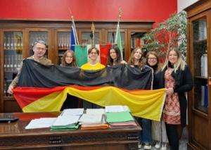 Nach einem herzlichen Empfang von der italienischen Erasmuskoordinatorin Giovanna Chisari erhielt die deutsche Delegation eine von den Gastschüler:innen geleitete Tour durch den Alt- und Neubau des Gymnasiums Calini.