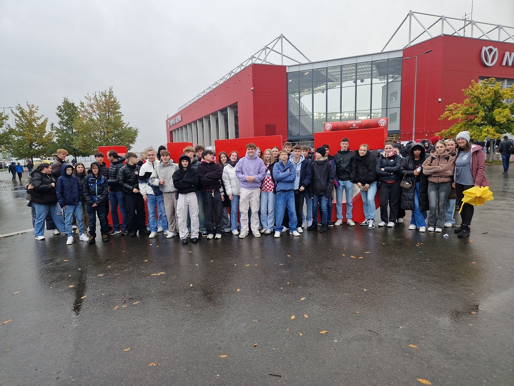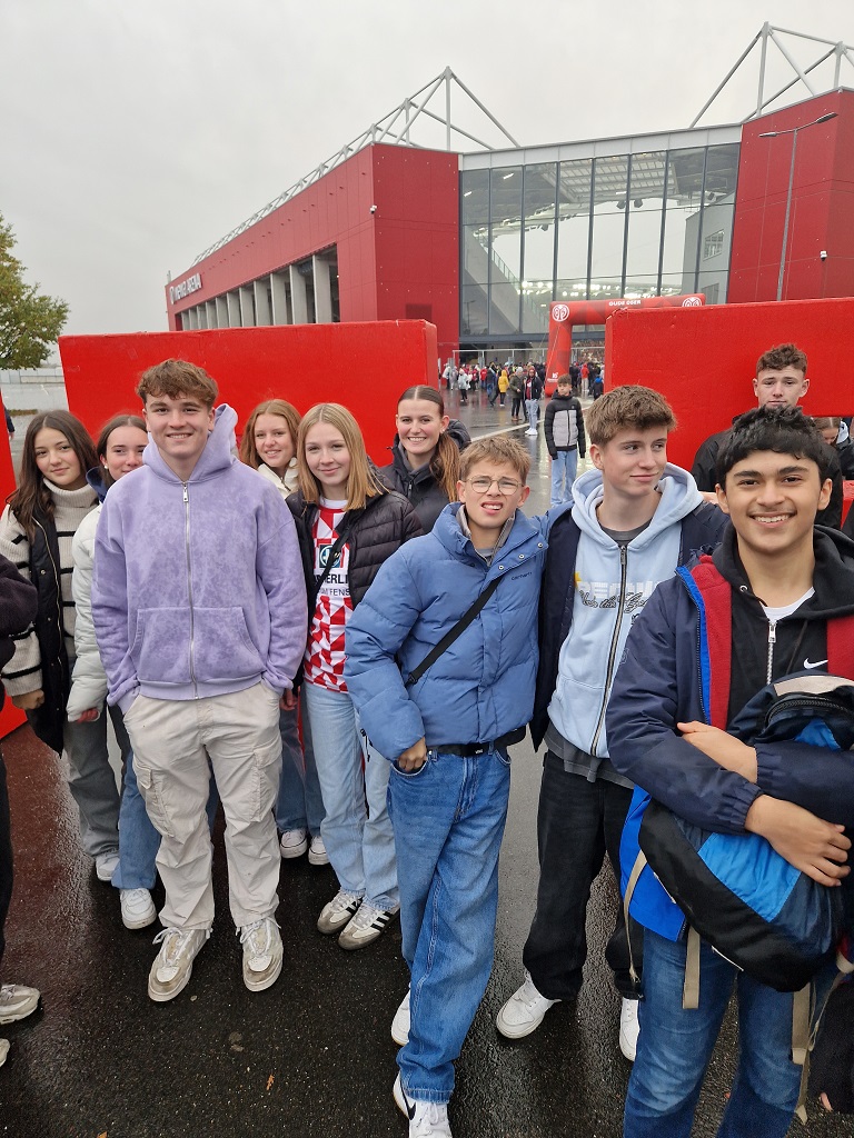 Seit ein paar Monaten ist das Gymnasium auf der Karthause Partnerschule des Fußballvereines Mainz 05. Die ersten Freikarten gingen nun wie versprochen an die Ready Steady Go – AG, da diese den Anlass für die Kooperation geliefert hatte. So reisten am Samstag 48 SchülerInnen mit Frau Caesar und Herr Beck nach Mainz, um das Spiel gegen den RB Leipzig anzuschauen. Leider ist die Bahnstrecke zwischen Koblenz und Mainz im November durch Bauarbeiten gesperrt, so dass Teile mit dem Bus zurückgelegt werden mussten, was die Reisezeit stark verlängerte. Das tat der guten Stimmung aber ebenso wenig Abbruch wie der Dauerniesel, der an diesem Tag herrschte. Angekommen am Stadion freuten sich alle über die tollen Plätze direkt am Tor in der zweiten bis sechsten Reihe. Nach einer torlosen ersten Halbzeit gelang den lange sieglos gebliebenen Mainzern dann das erhoffte Tor, auf welches bald darauf ein zweites folgte. Dieses wurde erst nach einem Videobeweis bestätigt, was die Spannung noch erhöhte. Frenetisch wurde der Sieg auf den Rängen gefeiert. Gemeinsam mit vielen tausend Mainz05-Fans fuhren wir nach dem Spiel zurück in die Stadt, wo noch kurz Zeit blieb, um sich aufzuwärmen und den Magen zu füllen. Wir bedanken uns noch einmal beim Verein für die Freikarten und freuen uns schon auf die weiteren Events in diesem Schuljahr.