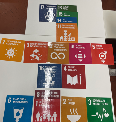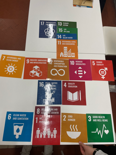 Nachdem jeder und jede der elf Teilnehmenden aus Griechenland, der Slowakei, Kroatien und Deutschland die eigene Schule in einem Kurzvortrag vorgestellt hatte, wurde der Fokus durch die italienische Kursleiterin auf Klimaforschung und Ursachen des Klimawandels gelenkt. In diesem Zusammenhang wurden Folgen des Klimawandels, persönlich spürbare Auswirkungen sowie globale Klimagerechtigkeit diskutiert und die aktuellen politischen Entwicklungen im Hinblick auf die Ziele für nachhaltige Entwicklung der UN kritisch hinterfragt. Durch verschiedene Aktivitäten – wie der Versuch der hierarchischen Anordnung der 17 Ziele oder das Verknüpfen zusammengehöriger Ziele mit Wollfäden – wurden diverse Methoden der Visualisierung erprobt, um den Schülerinnen und Schülern die komplexen Zusammenhänge und die Vernetzungen erfahrbar machen zu können und den systemischen Charakter des Nachhaltigkeitsgedanken näher zu bringen. Darüber hinaus wurde das weltweite Plastikmüllproblem sowie Recyclingmethoden beleuchtet und außerdem ein Workshop des Gemeindegartens ORTI DIPINITI zur Züchtung von Gemüse und Kräutern besucht. Die Workshopinhalte können insbesondere bei der Umgestaltung unseres botanischen Gartens einfließen.